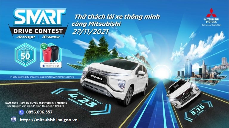 Trong tháng 11 và 12 năm 2021, Nam Auto – Nhà phân phối ủy quyền 3S của Mitsubishi Motors Việt Nam tổ chức chương trình “Thử thách Lái Xe Thông Minh Cùng Mitsubishi – Smart Driving Contest” với 2 mẫu xe Xpander & Attrage. Tham gia chương trình, khách hàng sẽ có cơ hội nhận được các phần quà Nam Auto cùng chương trình ưu đãi mua xe đặc biệt.